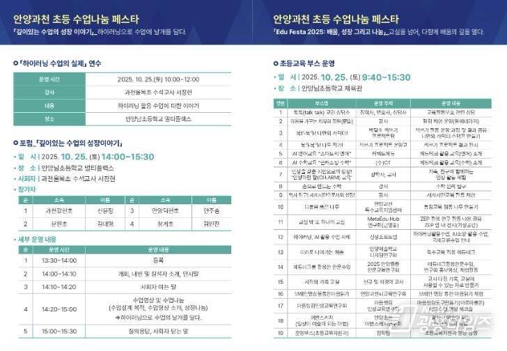 이번 에듀-페스타(Edu-Festa)는 하반기 수업나눔 한마당인 10.15.~10.24. 8일간 6가지 수업주제*로 17회 이뤄진 수업 공개와 수업 나눔을 마무리하는 포럼이 운영되고, 2025년 초등교육뿐 아니라, 유아 및 특수교육을 포함하는 교육지원 활동을 통합한 성과나눔의 자리로 그 의미가 크다