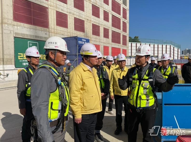 이날 점검은 ‘시흥 은행2지구 C-1ㆍ2블록’과 ‘시흥시 미디어영상센터’ 등 2개 건설현장에서 진행됐다. 점검반은 현장 관계자의 브리핑을 통해 공사개요와 안전관리 현황을 확인한 뒤, 근로자 및 시설물 전반의 안전관리 실태를 면밀히 점검했다.