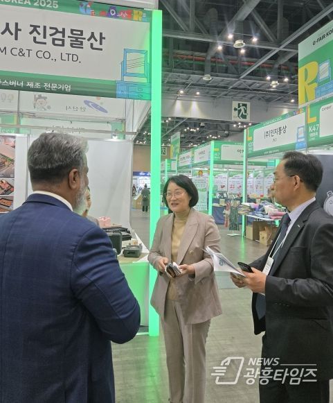 [광흥타임즈 = 조수제 기자] 경기도의회 교육기획위원회 신미숙 의원(더불어민주당, 화성4)은 31일, 고양 킨텍스 제1전시장에서 열린 ‘제28회 대한민국우수상품전시회(G-FAIR KOREA 2025(이하 “지페어코리아”)’ 현장을 방문해 국내 전도유망한 중소기업 및 소공인 관계자들을 격려했다.