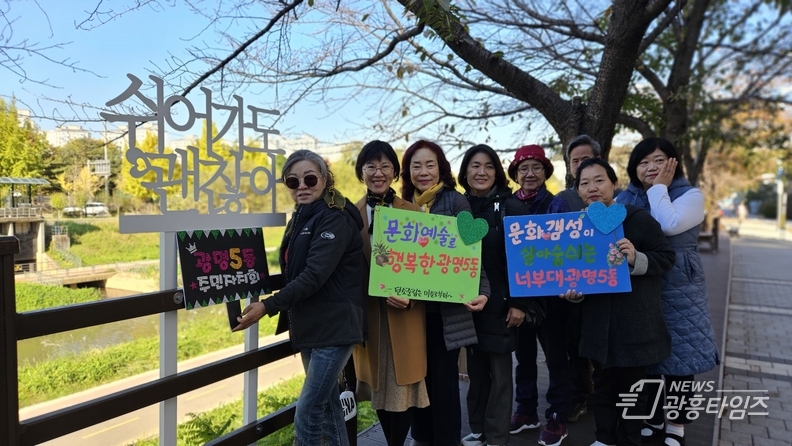 [광흥타임즈 = 조수제 기자] 광명시 광명5동 주민자치회는 4일 ‘걷고 싶은 목감천 쉼터 벤치 조성 사업Ⅱ(스탠딩힐링&감성글씨)’를 추진했다.