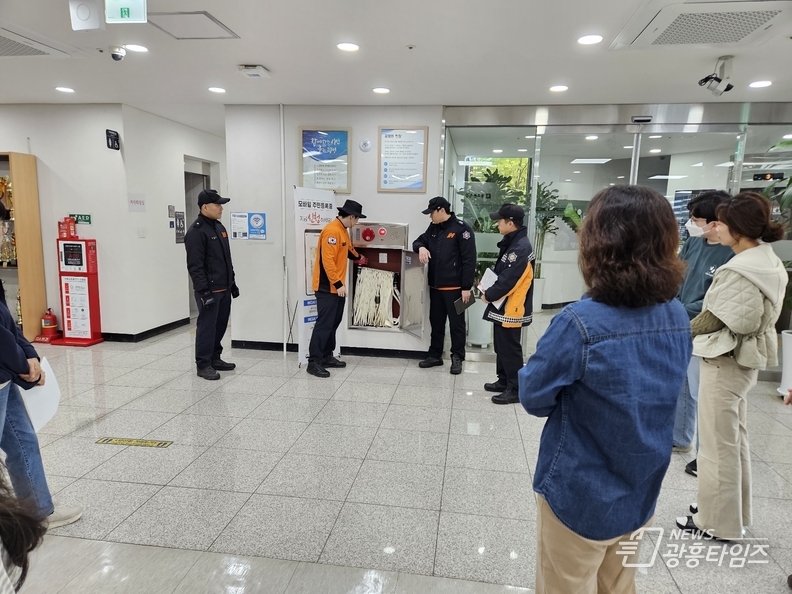 훈련에서는 광남119안전센터 소속 교관들이 대피 요령과 소화기·소화전 사용법을 교육하고, 실제 화재 상황을 가정한 모의훈련을 실시했다.