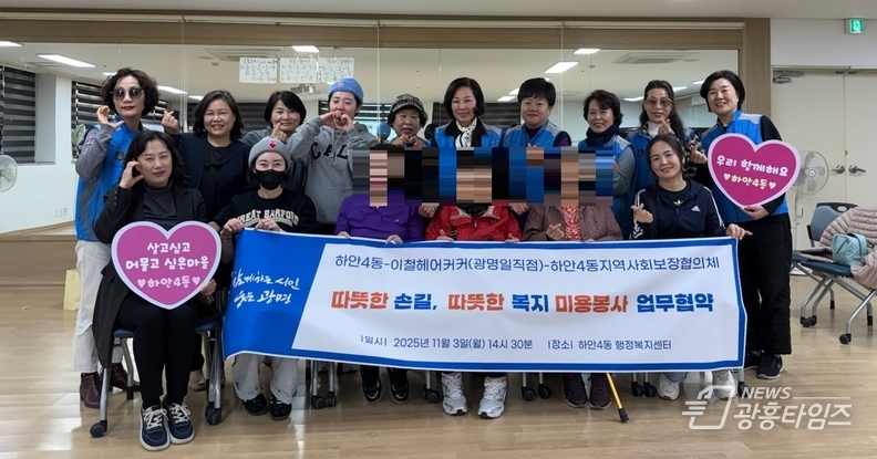[광흥타임즈 = 조수제 기자] 광명시 하안4동 지역사회보장협의체와 이철헤어커커 광명일직점이 지난 3일 하안4동 행정복지센터에서 미용봉사 협약을 체결했다.