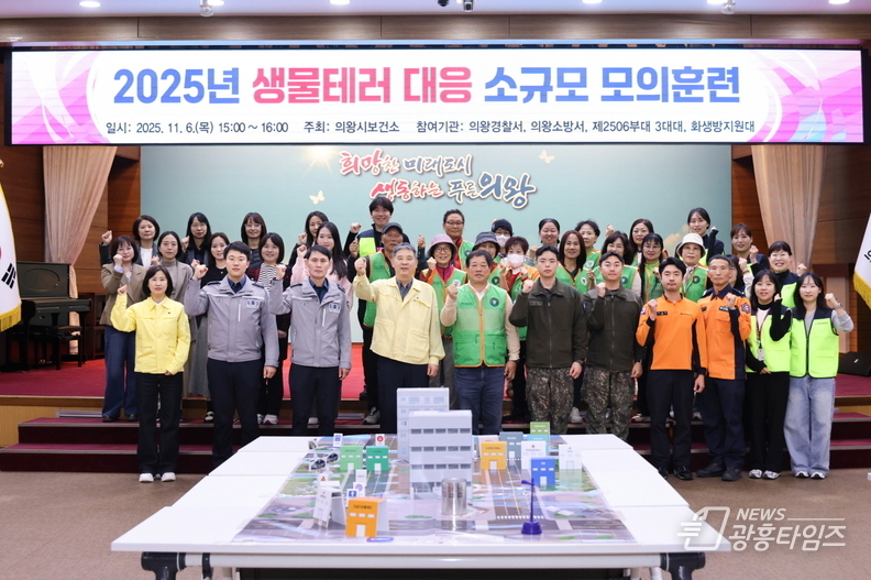 [광흥타임즈 = 구민지 기자] 의왕시는 11월 6일 시청 대회의실에서 보건소 주관으로 생물테러 대비·대응을 위한 유관기관 합동 소규모 모의훈련을 실시했다.