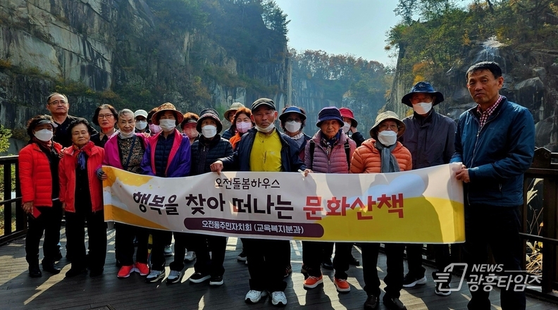 [광흥타임즈 = 구민지 기자] 의왕시 오전동주민자치회는 지난 11월 6일, 오전주민돌봄하우스 어르신들의 정서적 안정과 여가 활동 지원을 위한 ‘행복을 찾아 떠나는 문화산책’ 행사를 진행했다.