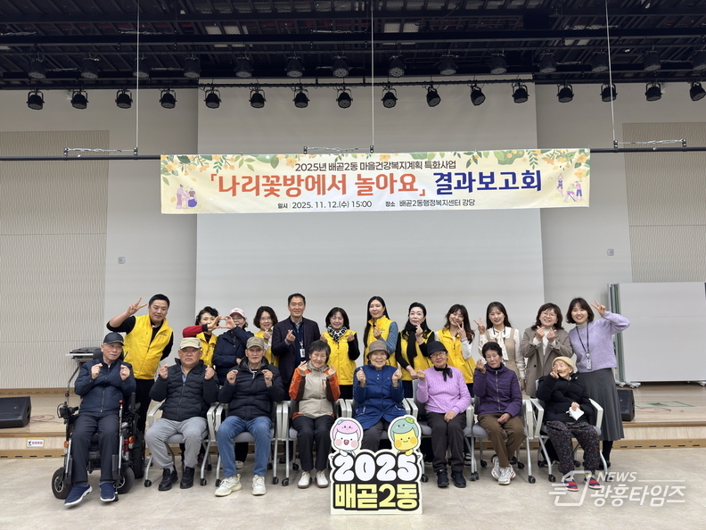 [광흥타임즈 = 조수제 기자] 배곧2동 지역사회보장협의체는 지난 11월 12일 ‘나리꽃방에서 놀아요’ 결과보고회를 개최하며 1년간의 활동을 마무리했다. 이번 행사는 사업에 참여한 어르신과 협의체 위원들이 함께 모여 그동안의 성과를 공유하고 서로에게 감사의 마음을 전하는 자리로 마련됐다.