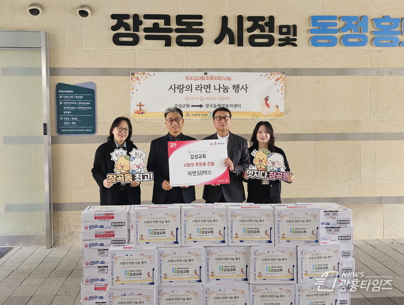 대한예수교 장로회 소속 강성교회는 기독교연합회를 통해 시흥시에 꾸준히 후원 활동을 해왔으며 이번 추수감사절을 맞이해 장곡동 관내 어려운 이웃에게 따뜻한 마음을 전하고자 라면을 후원했다.