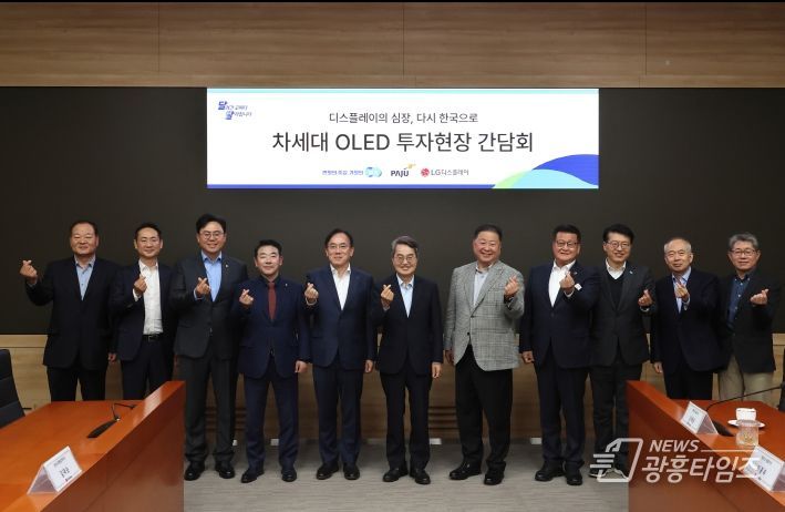 파주 LG디스플레이 R&D동에서 열린 ‘차세대 OLED 투자현장 간담회’에는 김경일 파주시장을 비롯해 박정 국회의원, 안명규·이용욱 도의원, LG디스플레이와 주요 협력사 대표 등 30여 명이 참석했다.