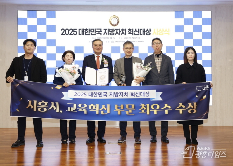 [광흥타임즈 = 조수제 기자] 시흥시는 지난 11월 20일 서울 건설회관에서 열린 ‘2025 대한민국 지방자치 혁신대상’에서 교육혁신 부문 최우수상을 받았다. 시는 지난해 최고 혁신 단체장상에 이어 2년 연속 수상의 쾌거를 이루며 교육혁신 선도 도시로서의 위상을 다시 한번 입증했다.