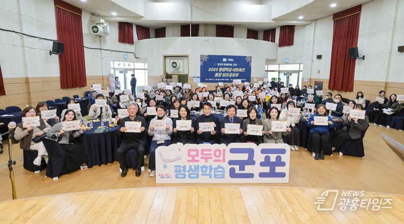 [광흥타임즈 = 조수제 기자] 군포시는 지난 20일, 군포시평생학습마을 대강당에서 평생교육 발전에 기여한 관계자들의 노고를 치하하고 한 해 동안의 학습 성과를 공유하는 ‘2025년 평생학습 네트워크 통합 성과공유회’를 개최했다고 밝혔다.