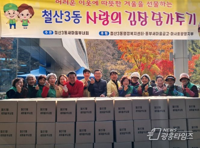[광흥타임즈 = 조수제 기자] 광명시 철산3동 새마을부녀회는 지난 19일부터 20일까지 이틀간 철산3동 행정복지센터 앞마당에서 ‘사랑의 김장 나누기’ 행사를 열었다.