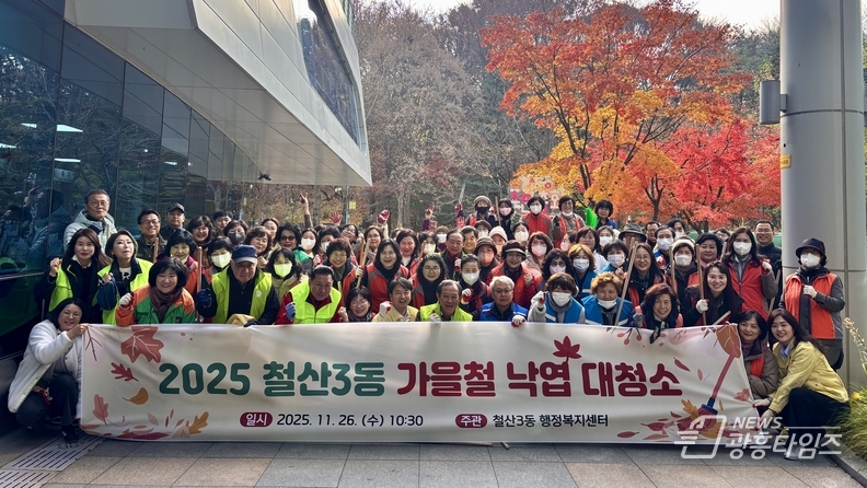 [광흥타임즈 = 조수제 기자] 광명시 철산3동 행정복지센터는 26일 가을철을 맞아 9개 유관단체 단체원과 직원, 지역 주민 등 100여 명이 참여한 가운데 빗물받이 주변과 길거리 낙엽을 정리하는 대청소를 실시했다.