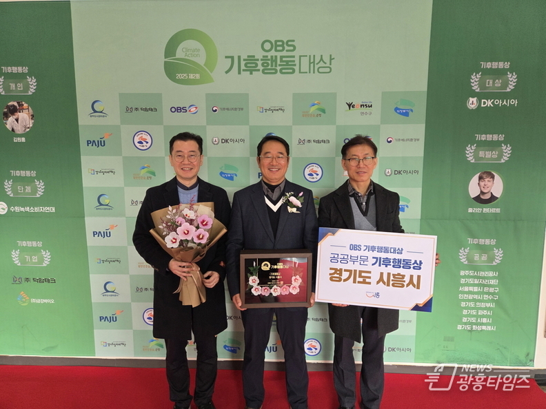 [광흥타임즈 = 조수제 기자] 시흥시는 지난 11월 26일 OBS 부천 본사에서 열린 ‘제2회 OBS 기후행동대상’에서 공공부문 기후행동상을 받았다. 이번 수상은 시가 추진해 온 탄소중립 정책이 지역사회 기후대응 역량을 높이고, 지속가능한 도시 전환에 기여한 점을 인정받은 결과다.