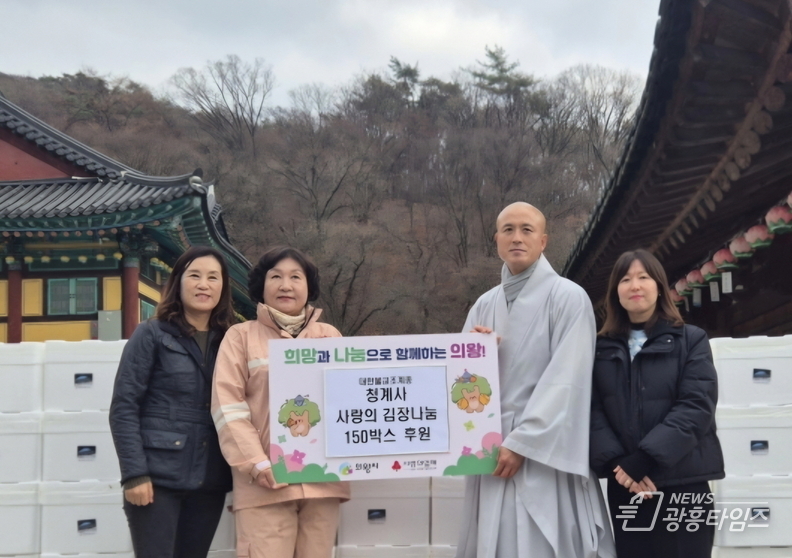 이번 김장 나눔은 지역사회 취약계층의 따뜻한 겨울나기 지원을 위해 추진됐으며, 청계사 신도들과 자원봉사자가 직접 나서 배추절임, 양념 버무리기, 포장까지 김장 전 과정에서 힘을 보탰다.