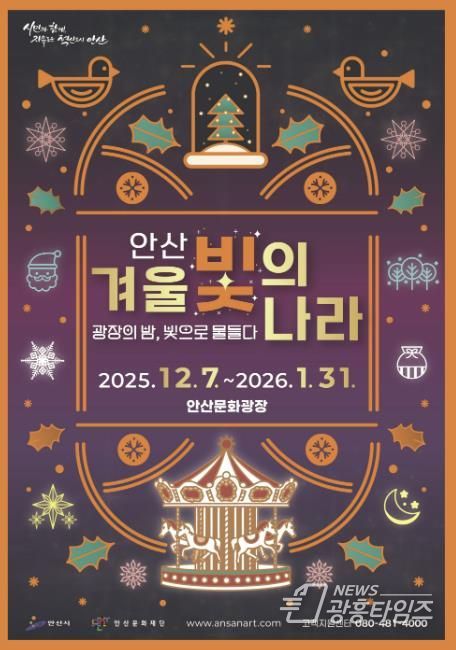 [광흥타임즈 = 조수제 기자] 안산시는 주말인 오는 7일을 시작으로 내년도 1월 31일까지 두 달여 간 고잔동 안산문화광장 일대에서 겨울 야간 축제, ‘2025 안산 겨울 빛의 나라’를 개최한다고 1일 밝혔다.