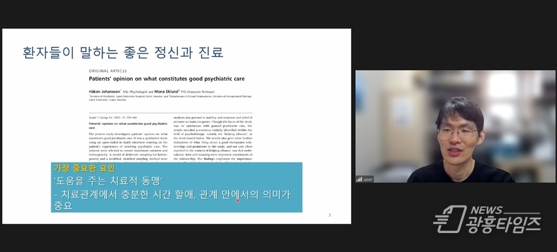 [광흥타임즈 = 조수제 기자] 시흥시정신건강복지센터는 지난 12월 2일 신천연합병원 정신건강의학과 장창현 과장을 초청해 실무자를 대상으로 ‘비판정신의학 살펴보기’ 온라인 교육을 진행했다. 교육에는 정신건강 관련 실무자 40여 명이 참여해 강의와 질의응답이 이어졌다.