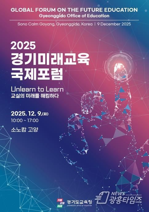 [광흥타임즈 = 조수제 기자] 경기도교육청이 오는 9일 소노캄 고양에서 녩경기미래교육 국제포럼’을 개최한다. ‘Unlearn to Learn: 교실의 미래를 해킹하다’를 주제로 전 세계 교육전문가와 함께 ‘미래교육의 새로운 방향’을 모색하고 담론을 선도하고자 마련한 자리다.