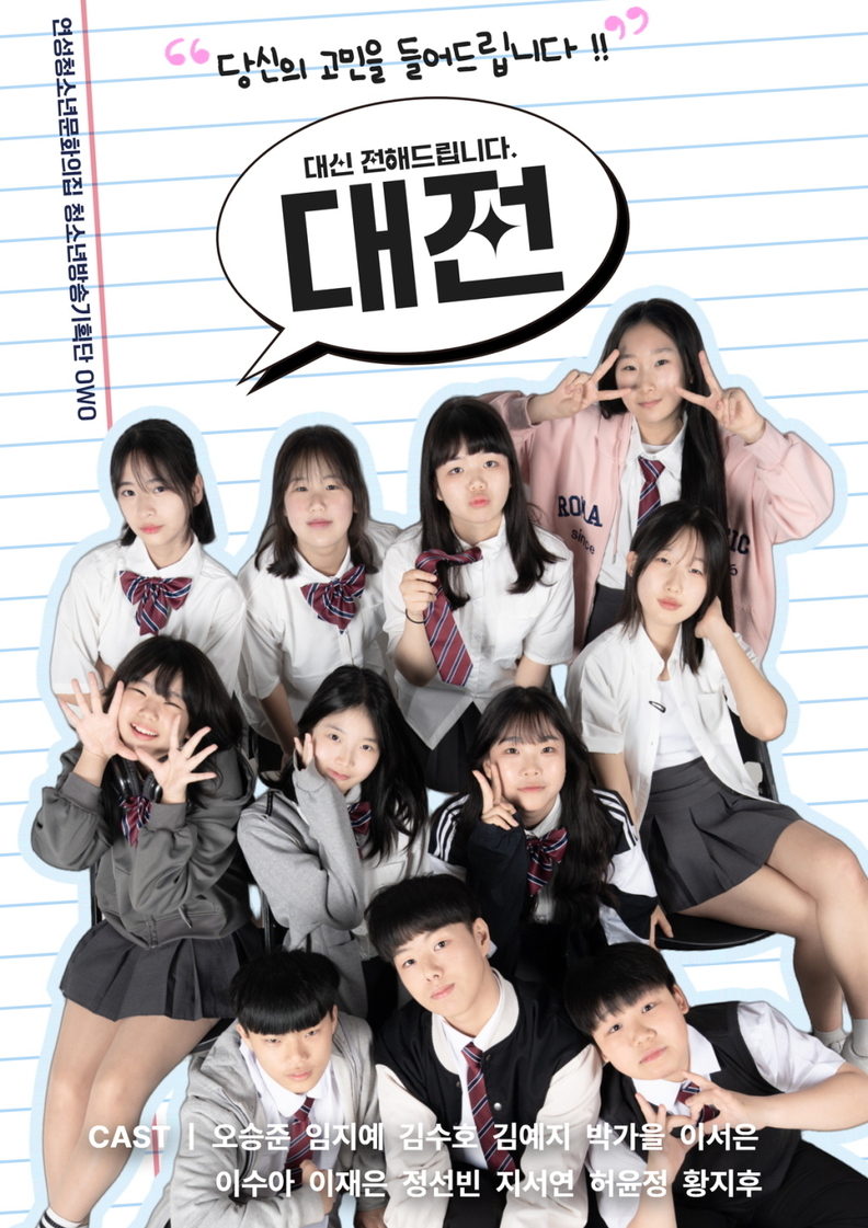 [광흥타임즈 = 조수제 기자] (재)시흥시청소년재단 연성청소년문화의집이 운영하는 시흥시청소년방송기획단 OWO가 주도해 제작한 웹드라마 ‘대신 전해드립니다’ 4부작이 완성됐다고 9일 밝혔다.