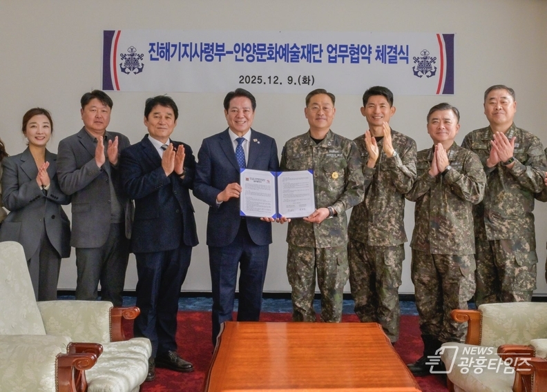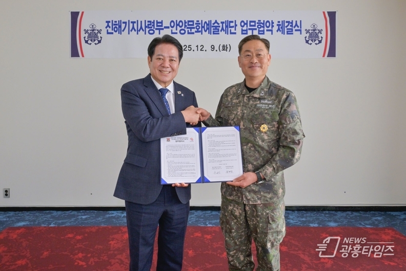 [광흥타임즈 = 조수제 기자] 안양문화예술재단은 9일 오전 10시 해군 진해기지사령부와 근현대 군사 건축유산의 조사·보존 및 연구 기반 마련을 위한 업무협약(MOU)을 체결했다.