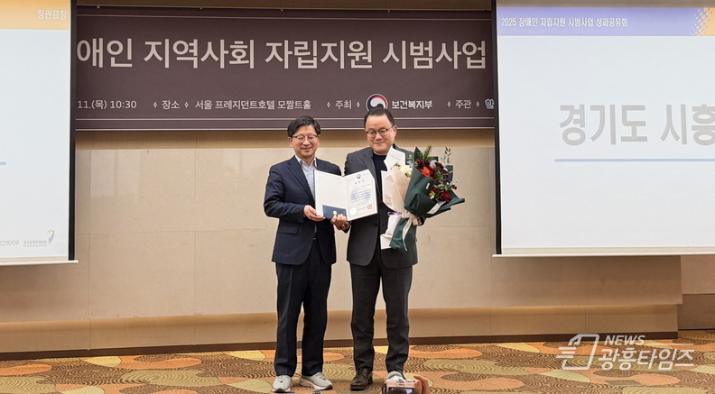 [광흥타임즈 = 조수제 기자] 시흥시는 지난 12월 11일 서울 중구 프레지던트호텔에서 열린 보건복지부 ‘2025년 장애인 지역사회 자립지원 시범사업 성과공유회’에서 ‘2025년 장애인 지역사회 자립지원 시범사업 유공’ 분야 보건복지부 장관 표창을 받았다.