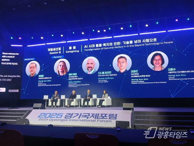 ‘2025 경기국제포럼’의 개별세션 가운데 하나로 지난 11일 열린 돌봄세션에는 국내외 석학, 복지 관련 기관·단체 및 도민 300여 명이 참석해 AI시대의 기술기반 복지에 대한 높은 관심을 나타냈다.