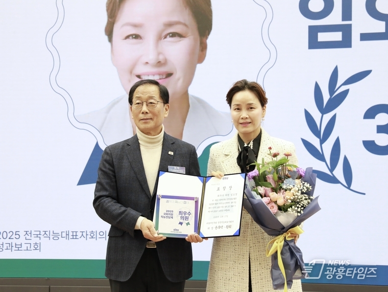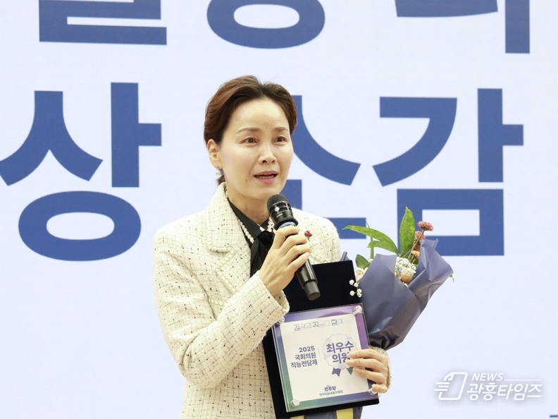 [광흥타임즈 = 조수제 기자] 광명갑 임오경 국회의원(더불어민주당)이 17일 국회에서 열린 ‘전국직능대표자회의 2025년도 성과보고회’에서 직능전담제 활동 최우수 의원상을 받았다.