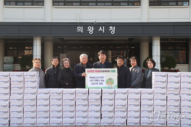 [광흥타임즈 = 구민지 기자] 의왕시는 12월 17일 한국공인중개사협회 의왕시지회가 라면 170박스를 의왕시에 기부하며 이웃사랑을 실천했다고 밝혔다.