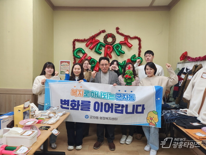 [광흥타임즈 = 조수제 기자] 시흥시 군자동 행정복지센터는 연말을 맞아 지난 12월 22일 플리마켓(벼룩시장)을 열고, 판매 수익금 전액을 경기 사회복지공동모금회(사랑의열매)에 기부하며 따뜻한 나눔을 실천했다.