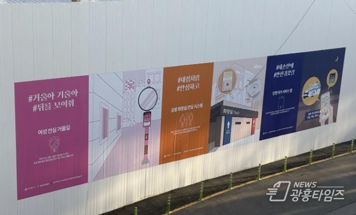 [광흥타임즈 = 조수제 기자] 안양시 범죄예방 시설물의 기능과 역할을 담은 ‘공사용 가설울타리 디자인’이 상록지구 및 안양역세권지구 재개발정비사업 공사현장에 반영됐다.