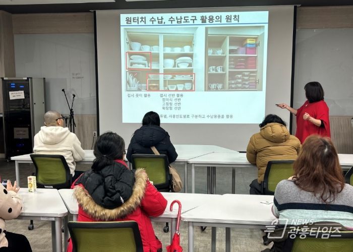 [광흥타임즈 = 조수제 기자] 광명시는 지난 22일 드림스타트 아동의 주거환경을 개선하고 건강한 생활습관 형성을 돕기 위해 보호자를 대상으로 ‘정리·수납’ 프로그램을 운영했다.