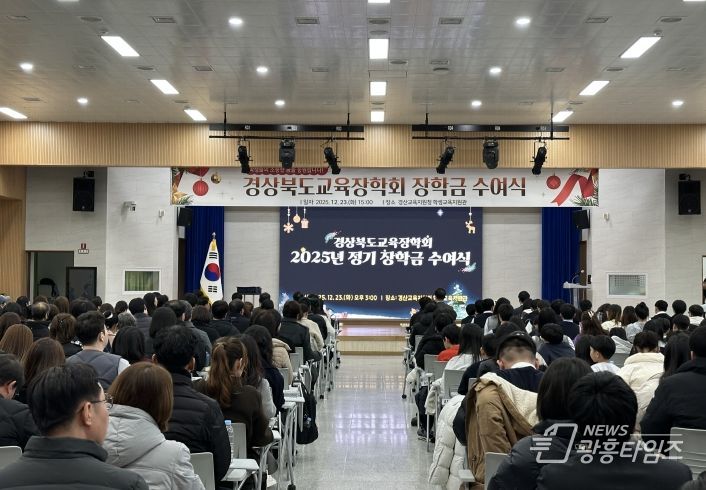 이번 장학금은 각 교육지원청의 추천을 받아 선정된 학생들에게 지급됐다. 대상자는 학업에 충실하고 모범이 되는 초.중학생 200명, 대학 진학을 앞둔 고등학교 3학년 학생 100명, 그리고 2025년 전국대회에서 우수한 성적을 거두며 경북교육의 위상을 높인 학생 45명 등 총 345명이다. 이날 수여식에는 학생과 학부모, 교사 등 200여 명이 참석해 자리를 빛냈다.