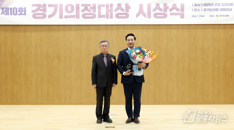 [광흥타임즈 = 조수제 기자] 김용성 경기도의원(더불어민주당, 광명4)은 22일, 경기도의회 대회의실에서 열린 경기의정대상 시상식에서 매니페스토 부문 대상을 수상했다.