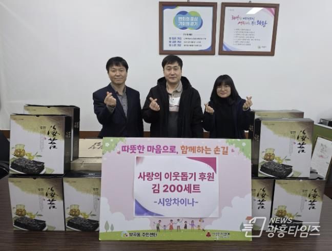 [광흥타임즈 = 구민지 기자] 의왕시 부곡동에 위치한 중식당 시앙차이나가 12월 23일 부곡동주민센터를 방문해 관내 취약계층에게 전달해달라며 조미김 200상자를 기탁했다.