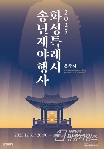 [광흥타임즈 = 구민지 기자] (재)화성시문화관광재단은 시민과 함께 2025년을 마무리하고 2026년을 맞이하는 '2025 화성특례시 송년 제야행사'를 오는 12월 31일 수요일 오후 8시부터 용주사 일원에서 개최한다.