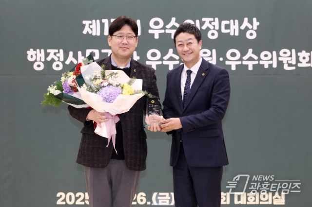 '우수의정대상'은 대한민국시도의회의장협의회가 매년 전국 광역의회의원을 대상으로, 주민참여 확대, 조례 제정, 지역현안 해결, 의정발전 기여도 등을 종합 평가해 시상하는 권위 있는 상이며, 김 의원은 2025년 한 해 동안 예산 감시, 공공기관 운영 점검, 도민 생활 밀착형 정책 제안 등 전방위 의정활동의 성과를 높이 평가받은 결과로 알려졌다.