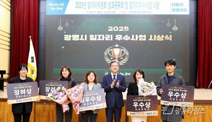 [광흥타임즈 = 조수제 기자] 광명시는 지난 26일 시청 대회의실에서 ‘일자리위원회 성과공유회 및 2025년 일자리 우수사업 시상식’을 열고, 한 해 동안 추진해 온 일자리 정책의 성과를 공유했다.