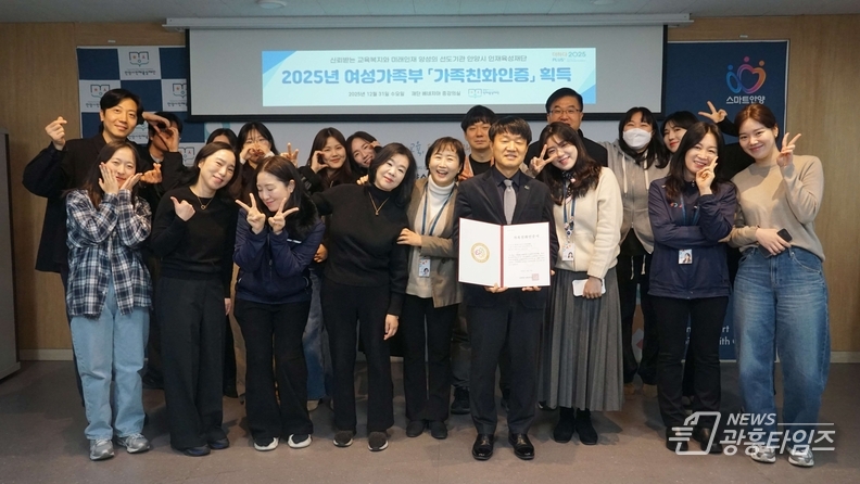 [광흥타임즈 = 조수제 기자] 안양시 인재육성재단은 여성가족부가 주관하는 ‘2025년 가족친화인증 심사’에서 우수한 평가를 받아 오는 2027년 11월까지 ‘가족친화인증기관’ 자격을 유지하게 됐다고 5일 밝혔다.