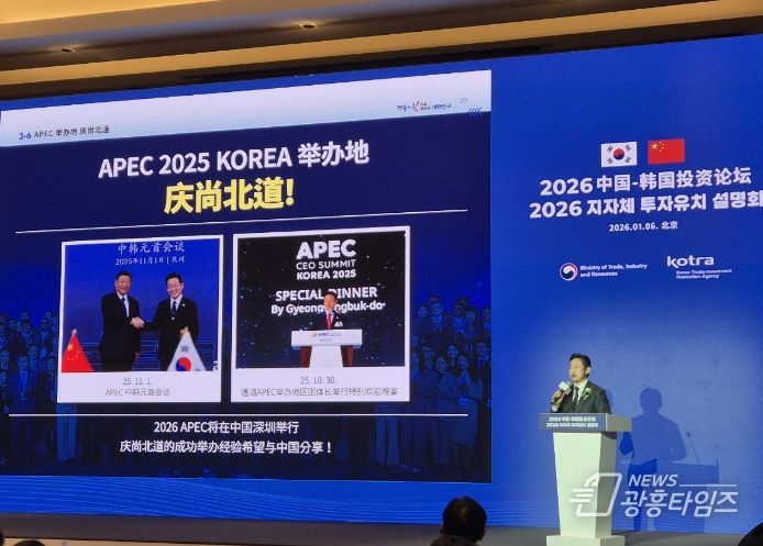 [광흥타임즈 = 조수제 기자] 경상북도는 6일 중국 베이징에서 열린 산업통상부 주관 지자체 투자유치 설명회에 참가해 중국 기업과 투자자를 대상으로 경상북도의 투자환경과 미래 협력 전략을 집중적으로 소개했다.