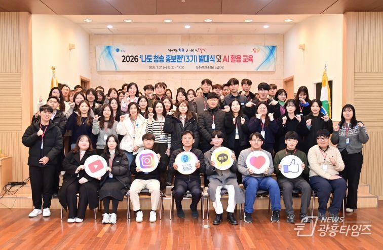 [광흥타임즈 = 조수제 기자] 청송군은 직원들이 직접 SNS 홍보에 참여하는 2026년 ‘나도 청송 홍보맨’ 발대식 및 AI 활용 교육을 21일 청송문화예술회관 소공연장에서 개최했다.