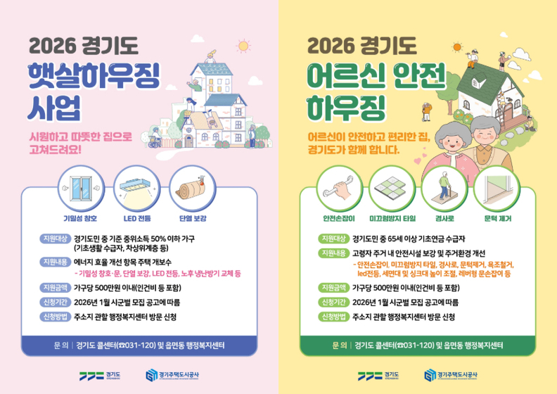 정용복 도시주택국장은 “경기도 지원으로 추진되는 이번 사업이 주거 취약계층의 생활 안전을 높이고, 주거 만족도 향상에 이바지할 것으로 기대한다”라며 “지원이 필요한 시민들의 많은 관심과 적극적인 신청을 바란다”라고 말했다.
