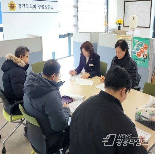 [광흥타임즈 = 조수제 기자] 경기도의회 박명숙 의원(국민의 힘, 양평 1)과 이혜원 의원 (국민의힘, 양평 2) 은 22일 양평군청 기획 예산담당관 관계자로부터 ‘경기 생활 쏙(SOC) 환원 사업’ 공모 추진 계획을 보고받고 사업 방향에 대해 함께 논의하는 시간을 가졌다.