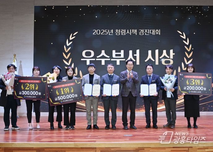 이날 회의에 앞서 2025년도 교육지원청 종합 청렴도 자체 평가와 본청 부서 청렴 시책 경진대회에서 우수한 성과를 거둔 교육지원청 2곳(문경, 청송)과 본청 3개 부서(미래교육정보과, 시설과, 총무과)에 대한 시상이 진행됐으며, 청렴도 향상을 위해 노력한 관계자들의 노고를 격려하는 시간이 마련됐다.