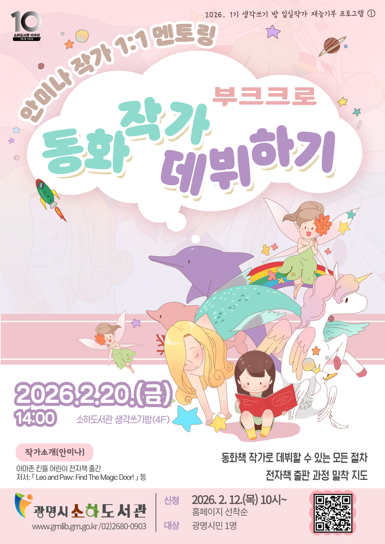 김광용 하안도서관장은 “이번 프로그램은 작가와 시민이 직접 소통하며 함께 성장하는 문화적 교류의 장이 될 것”이라며 “작가들의 전문성과 시민들의 열정이 어우러져 소하도서관이 지식과 창의가 확산되는 공공 문화 플랫폼으로 자리매김하길 기대한다”고 전했다.