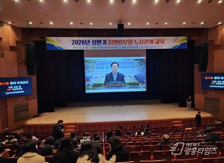 [광흥타임즈 = 조수제 기자] 경북교육청은 3일 포항시에 있는 경상북도교육청문화원에서 6급 이하 일반직 공무원 580여 명을 대상으로 ‘2026년 상반기 지방공무원 노사관계 교육’을 실시했다고 밝혔다.