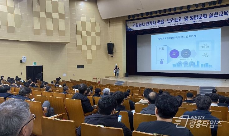 [광흥타임즈 = 조수제 기자] 경북도는 건설공사 현장의 안전사고를 예방하고 공사 추진 과정에서 발생할 수 있는 부패 취약요인을 사전에 차단하기 위해 ‘건설공사 관계자 품질·안전관리 및 청렴문화 실천교육‘을 2월 4일부터 2월 6일까지 총 3회 개최한다.