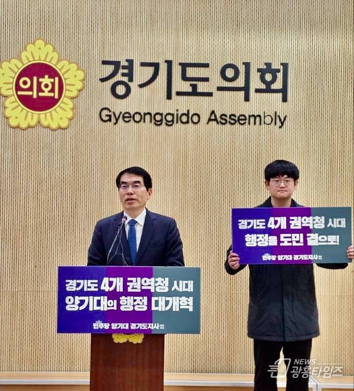 [광흥타임즈 = 조수제 기자] 경기도지사 예비후보인 양기대 전 더불어민주당 국회의원은 4일 1,400만 경기도민의 삶의 질을 획기적으로 높이기 위해 경기도 행정을 4개 권역별 행정청 체제로 전면 개편하는 ‘행정 대개혁’ 공약을 발표했다.