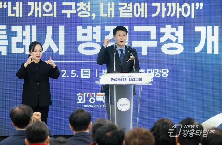 배정수 의장은 “오늘 우리는 새로운 혁신의 문을 열었다. 병점구 개청은 시민 중심 행정이 다시 움트기 시작하는 순간”이라며 “병점은 오랜 세월 화성의 삶과 문화가 집약된 공간이었고, 그 중심에 오늘 시민을 향한 새로운 행정의 심장이 뛰기 시작했다”고 말했다.
