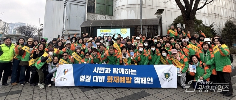 [광흥타임즈 = 조수제 기자] 광명시 자율방재단은 지난 5일 설 명절을 앞두고 유동 인구가 많은 철산역 일대에서 시민들의 화재 예방 의식을 높이기 위한 ‘설맞이 화재 예방 캠페인’을 실시했다.