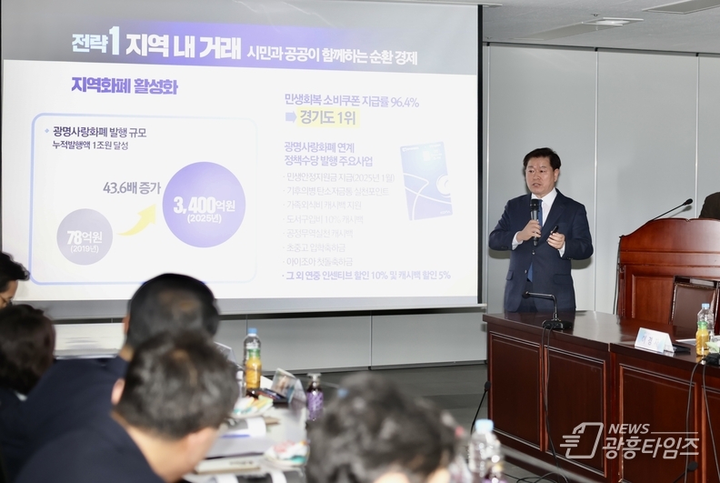지역 내 거래의 핵심 수단인 광명시 지역화폐 ‘광명사랑화폐’도 발행 규모를 확대하고 있다. 특히 올해는 도서구입비·가족외식비 캐시백 등 시민의 일상과 밀착된 혜택을 제공해 지역 내 소비 촉진을 이끌어낼 계획이다.