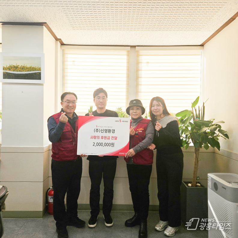 [광흥타임즈 = 조수제 기자] 시흥시 신현동 생활폐기물 처리업체㈜인 신영환경이 지난 2월 9일 신현동 지역사회보장협의체에 관내 취약계층을 위해 후원금 200만 원을 전달했다.