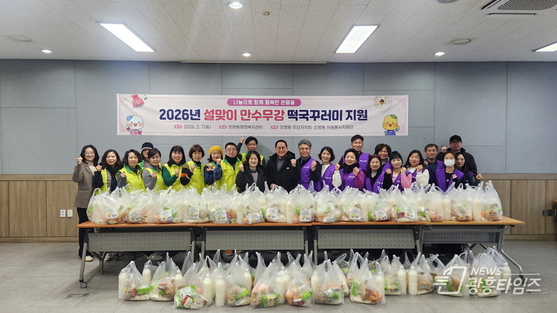 [광흥타임즈 = 조수제 기자] 시흥시 은행동 주민자치회와 자원봉사지원단은 지난 2월 7일 설 명절을 앞두고 취약계층 100가구에 ‘만수무강 떡국 꾸러미’를 전달하며 사랑을 전했다.